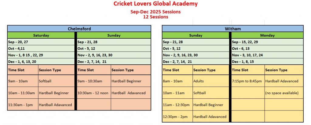 We run our indoor cricket coaching sessions throughout Autumn, Winter and Spring at the Sports Hall of Chelmer Valley High School, Court road, Broomfield , Essex, post Code- CM1 7ER (near Broomfield Hospital) .