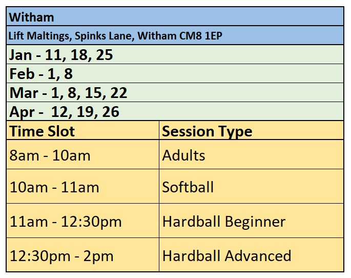 We will run both softball and hardball sessions at this location (timetable in image below)